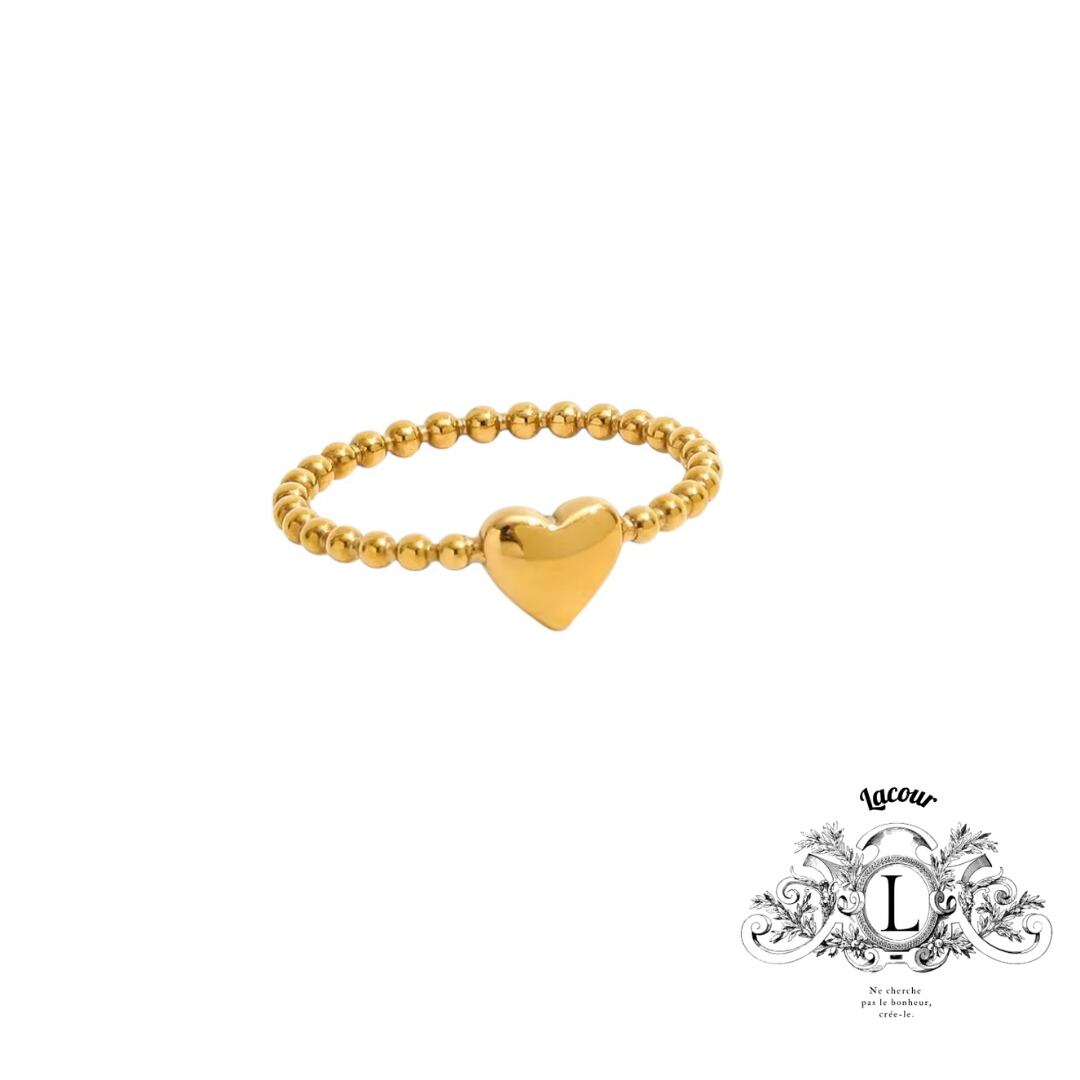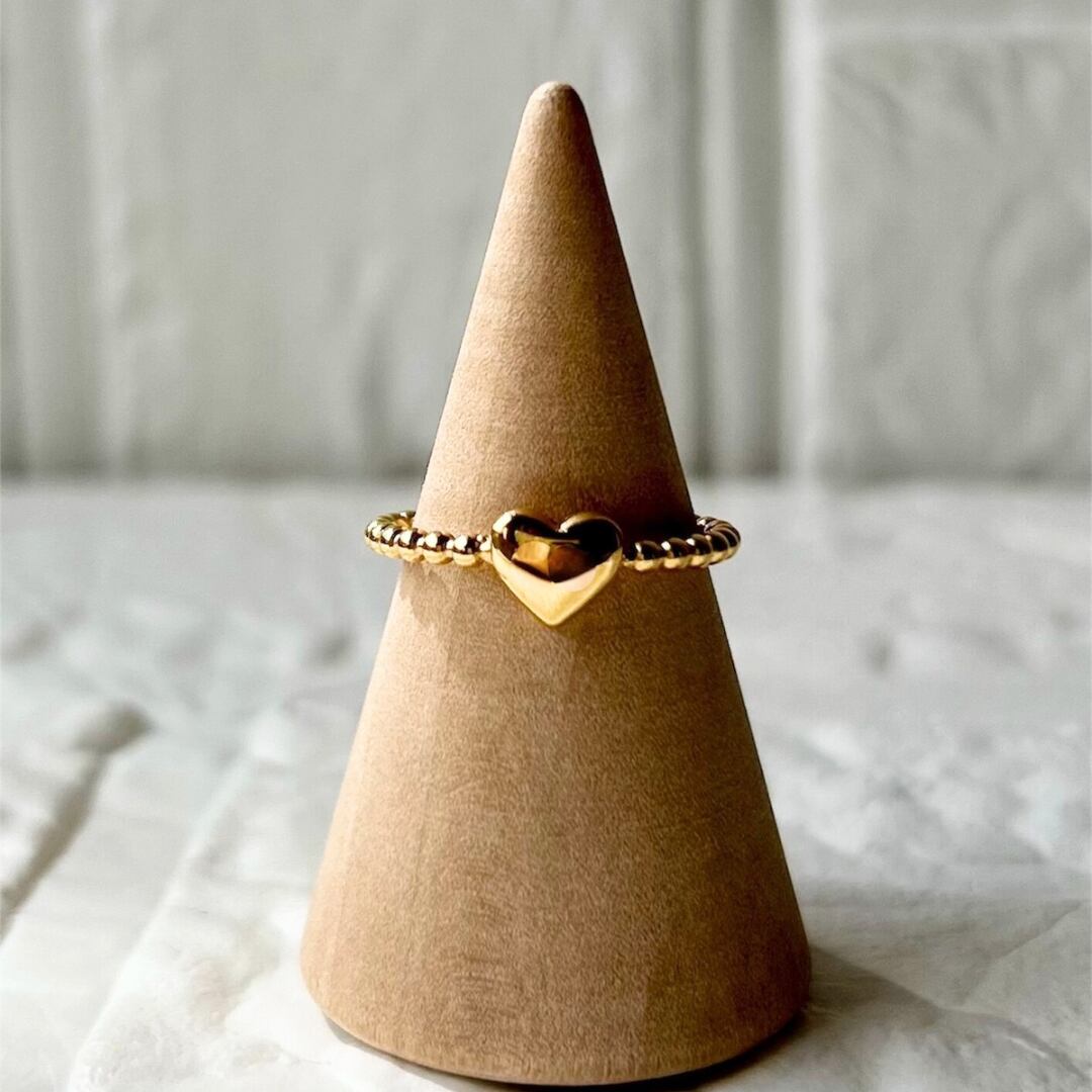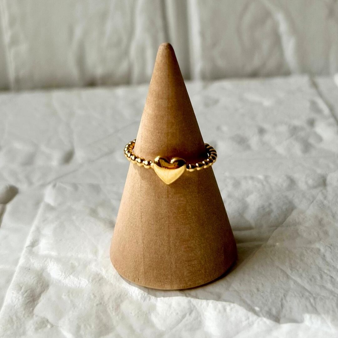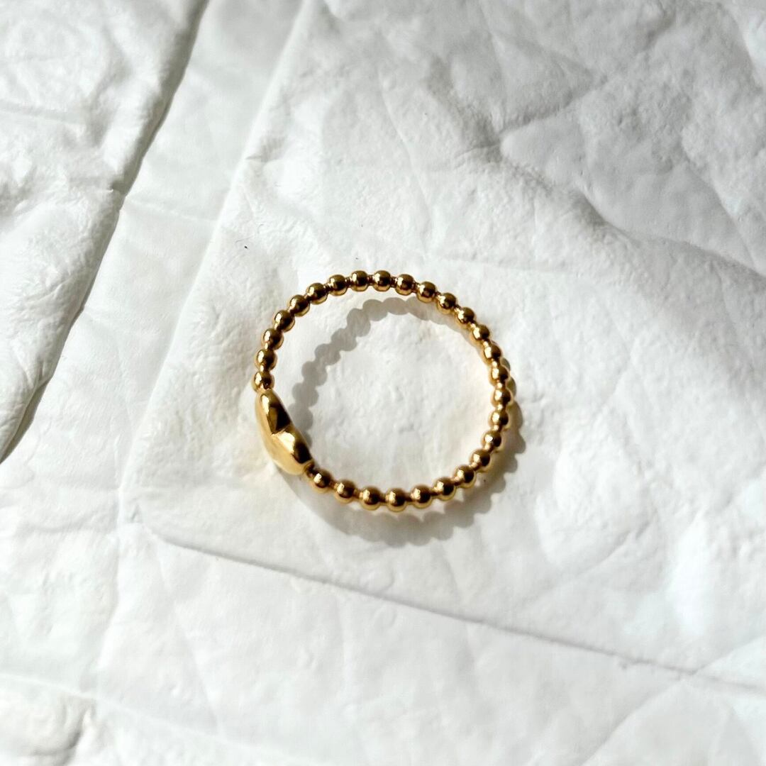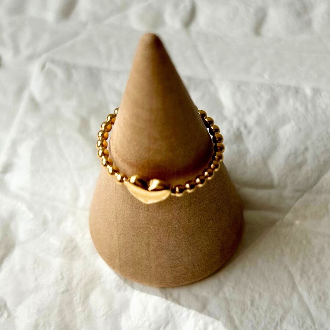 ハート×つぶつぶビーズリング|ゴールド・ステンレス・可愛い・金アレ対応【R-14】