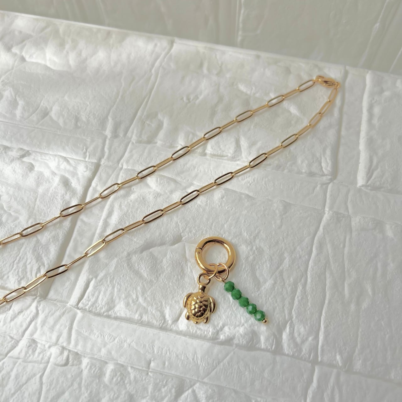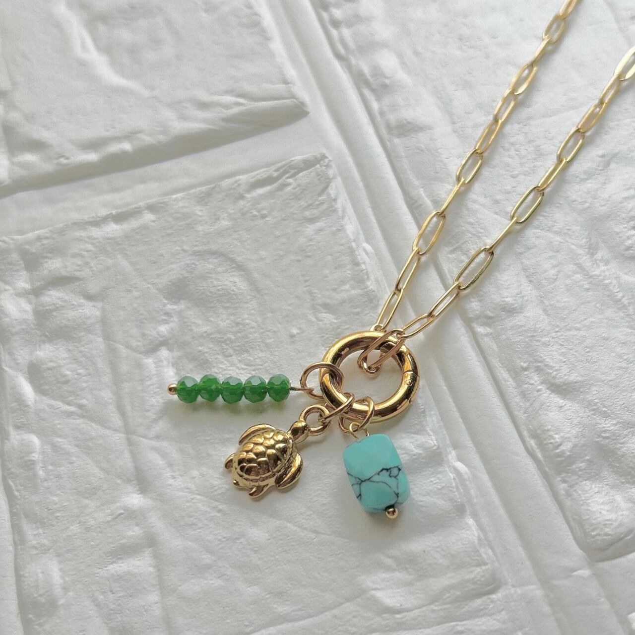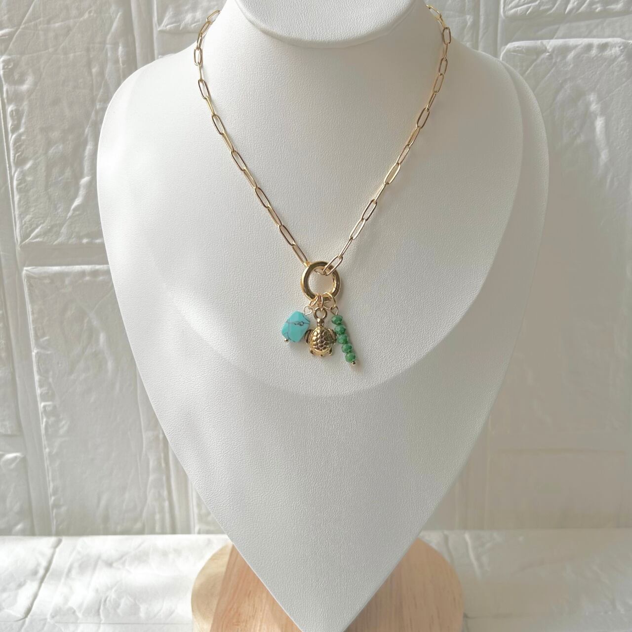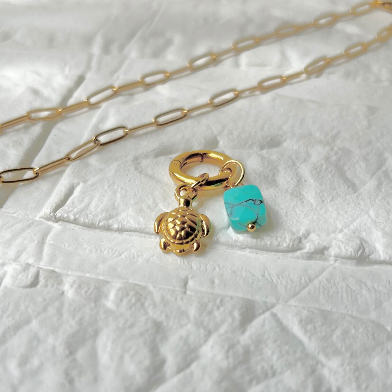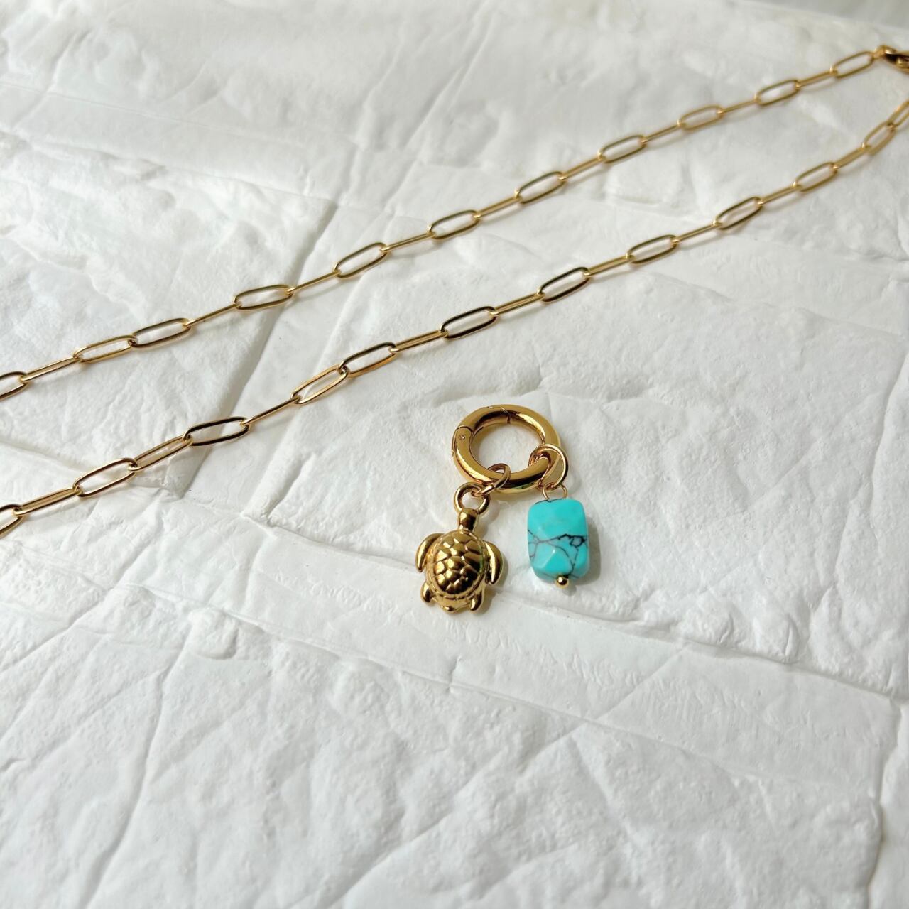 ターコイズ × ウミガメチャームネックレス(ゴールド)