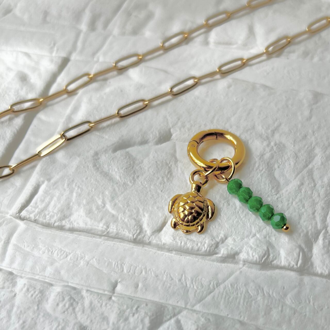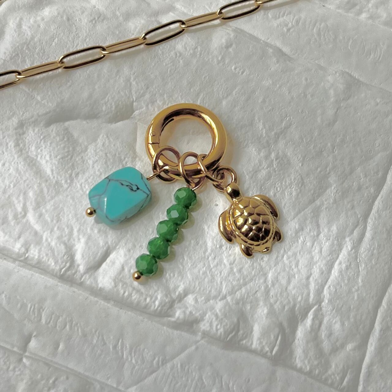 ・チャーム:ウミガメ(Stainless Steel 304)、ターコイズ、結晶風ビーズ(ガラス)