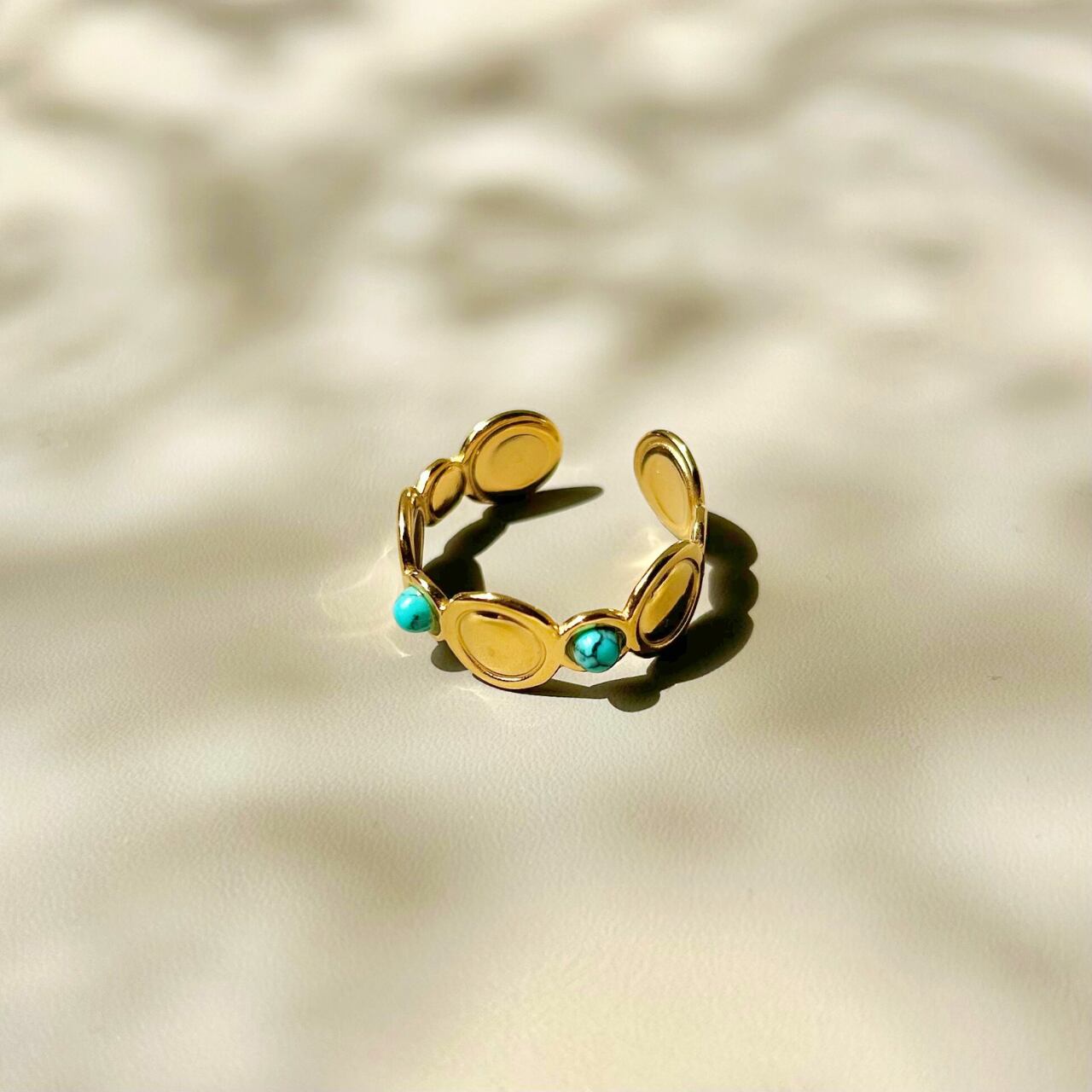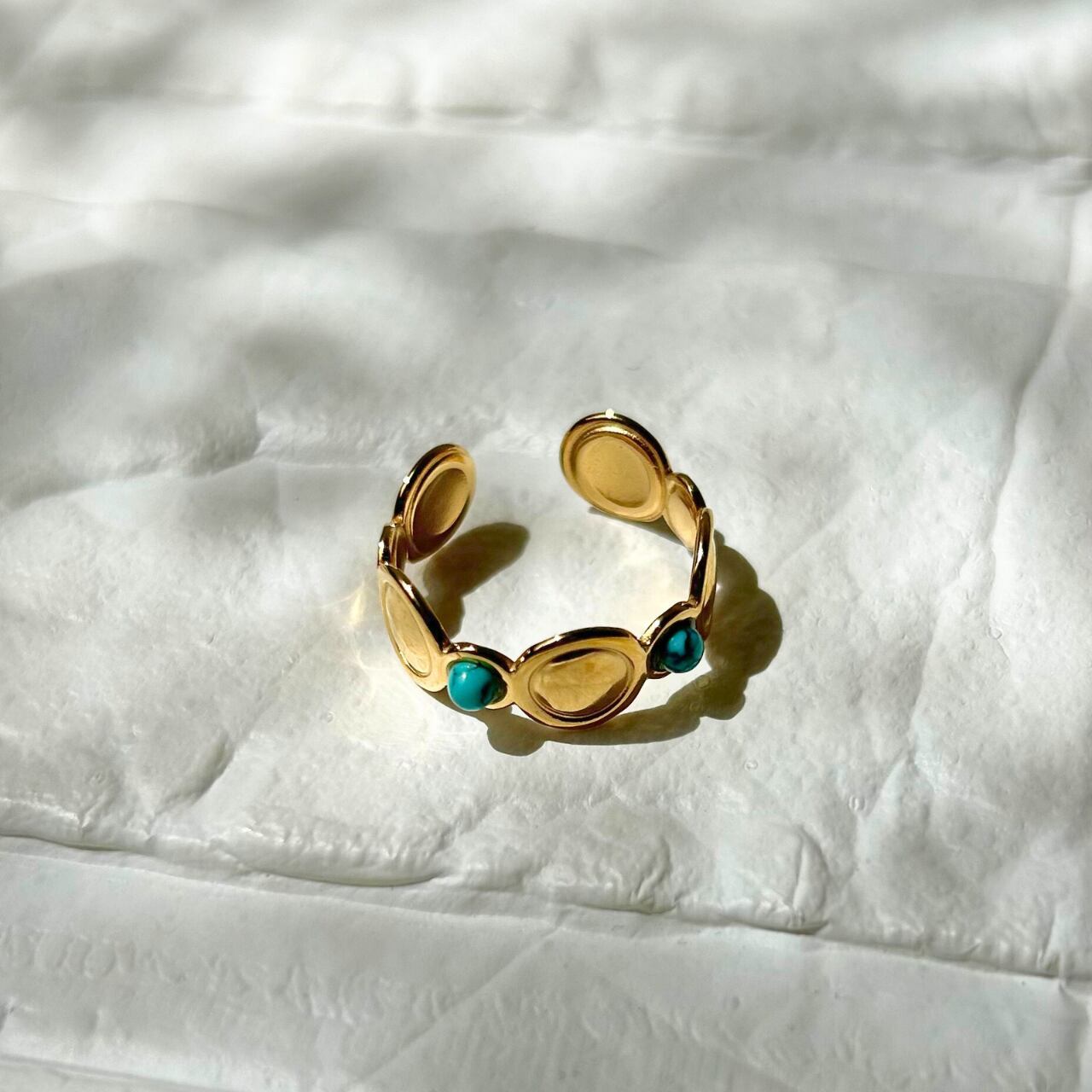 青空と海の境目のような美しいターコイズが、夏の自由な空気を感じさせてくれるオープンリング。