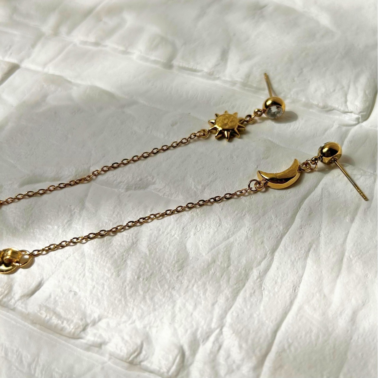 【Sun & Moon Chain Earrings】サン&ムーンチェーンピアス