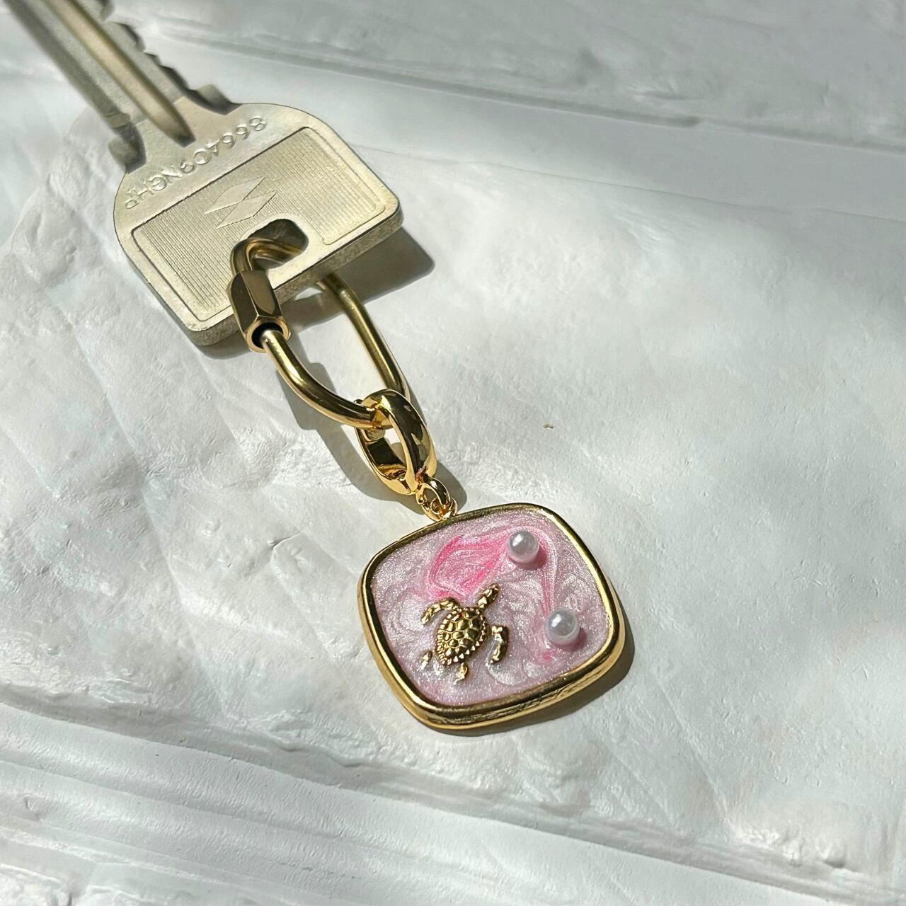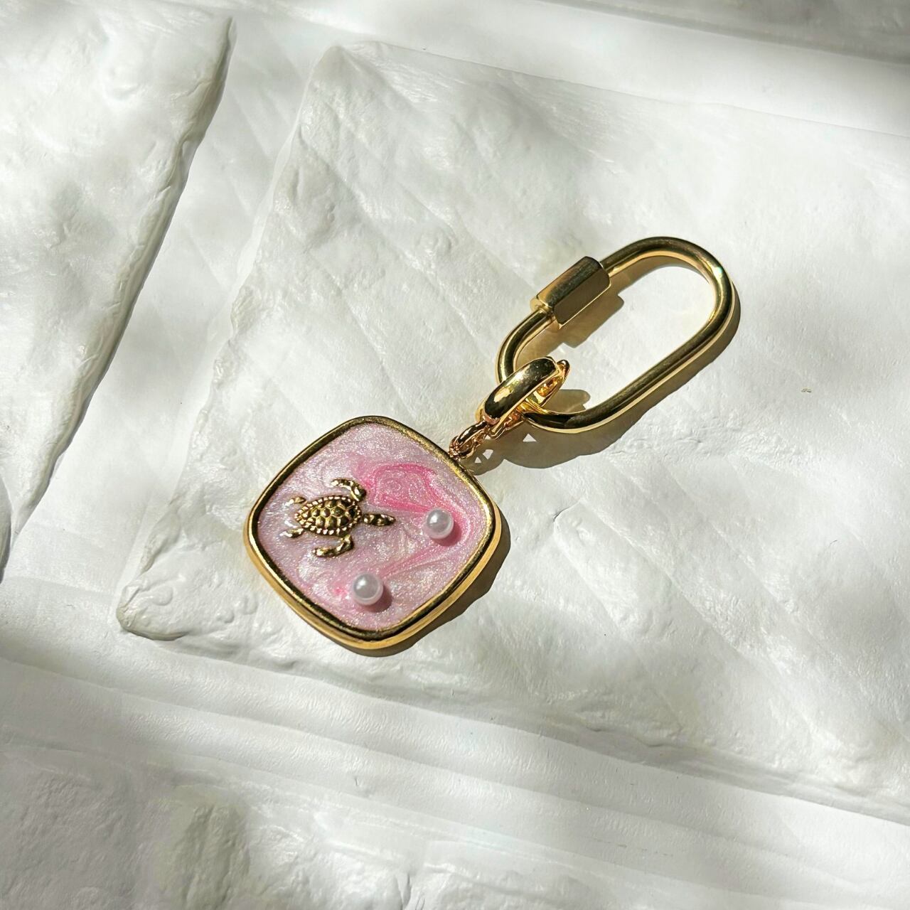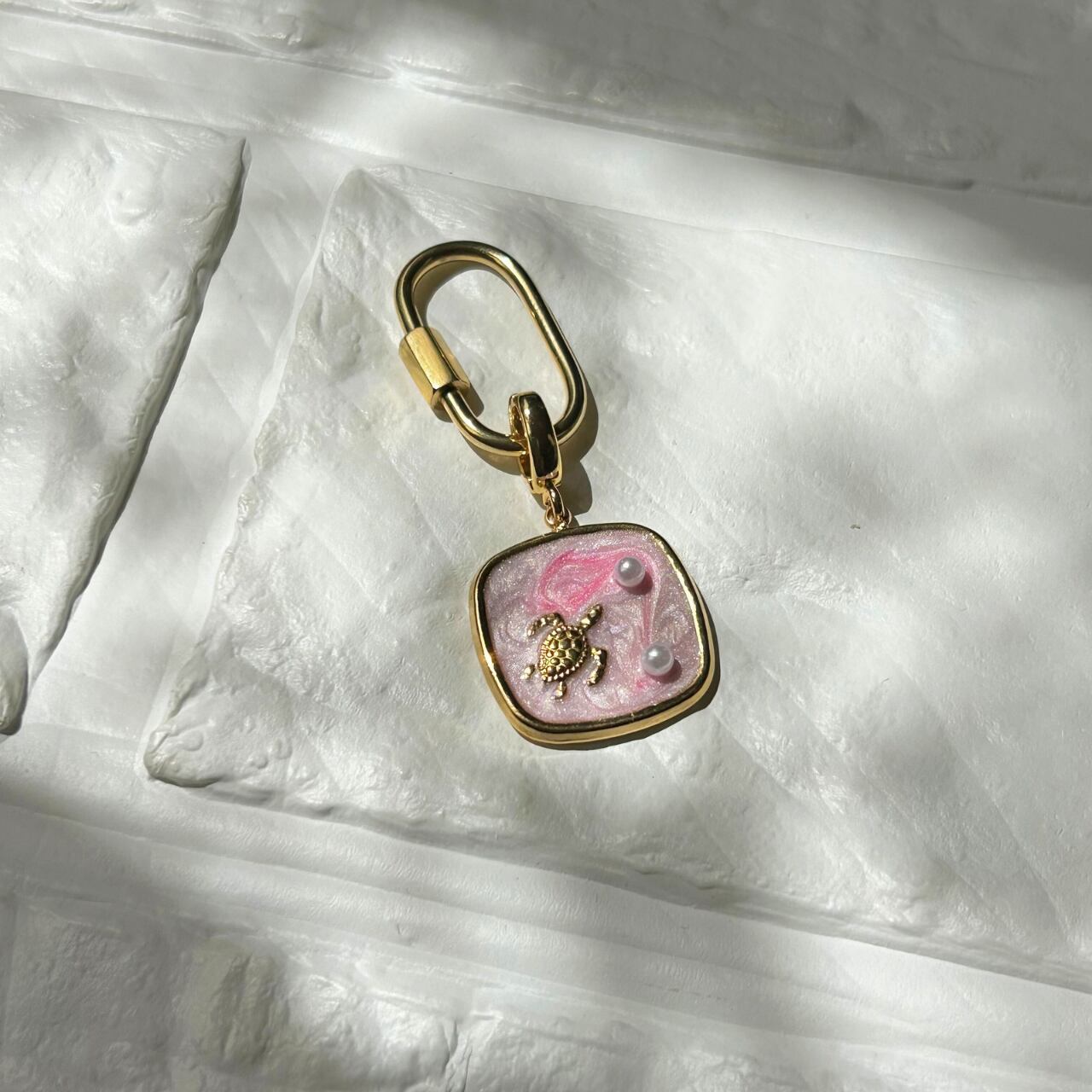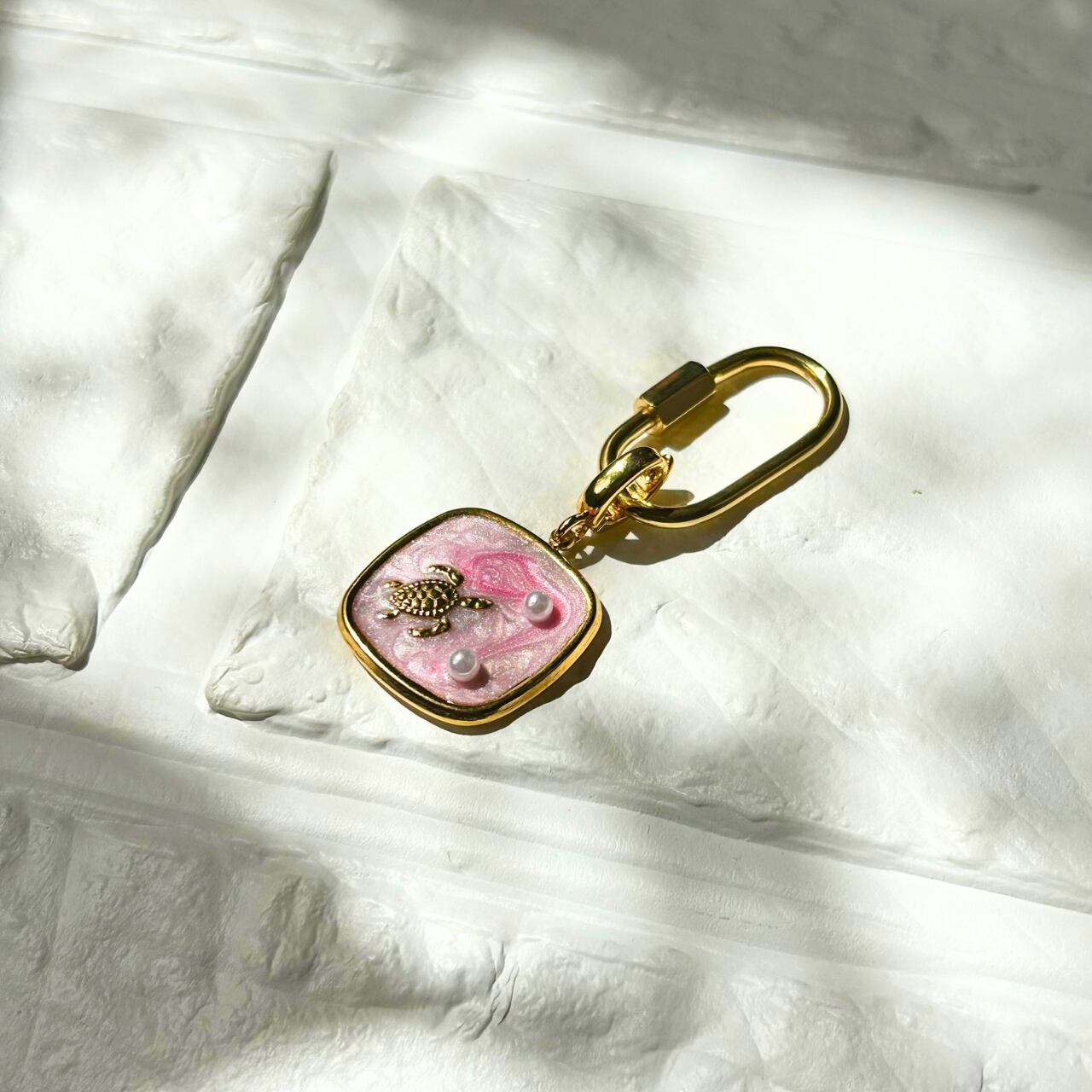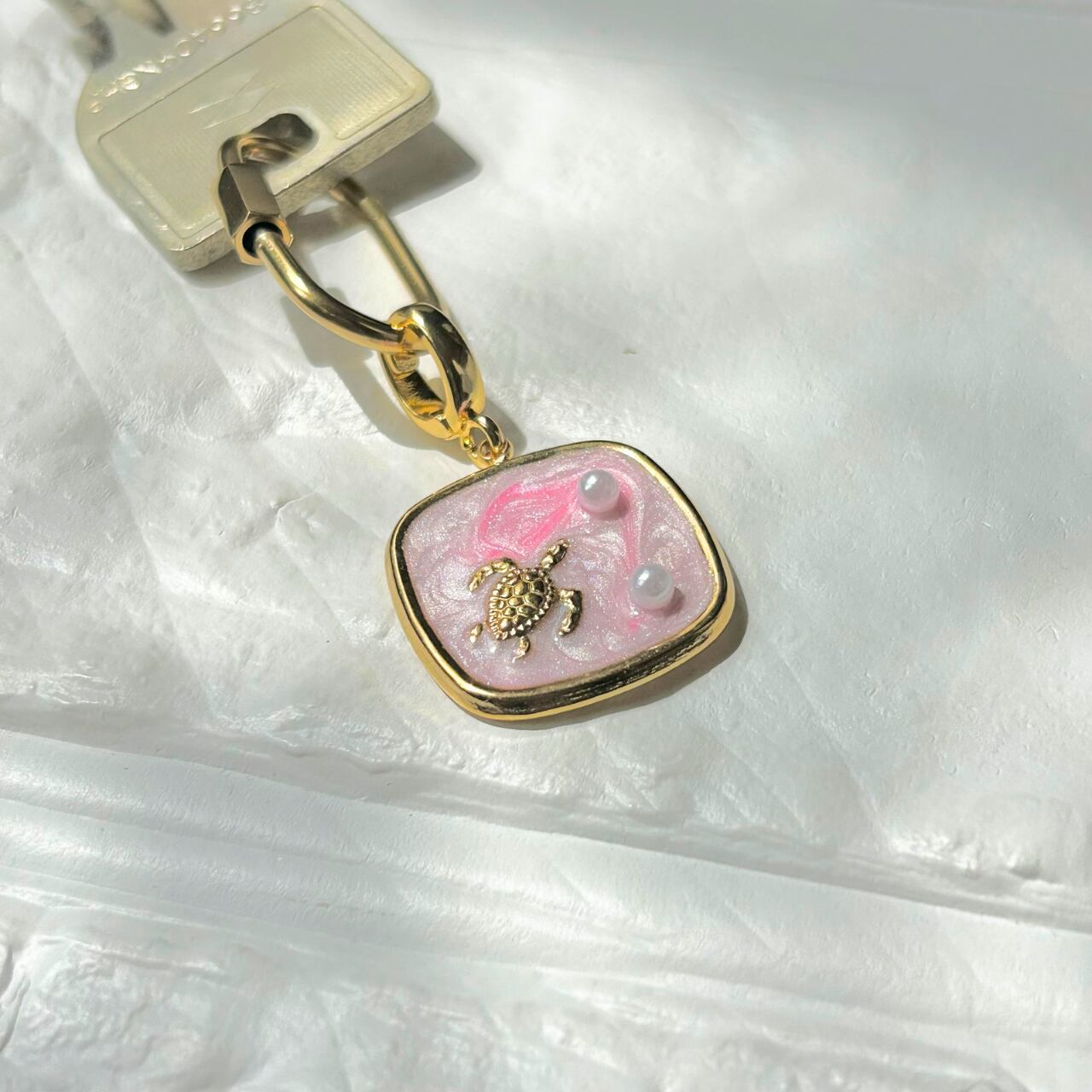 「幸運を運ぶウミガメに、やさしいピンクの彩り。